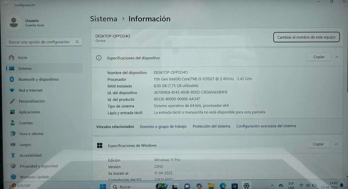 -Pantalla: LED 14.0″ (1920×1080) / 60 Hz